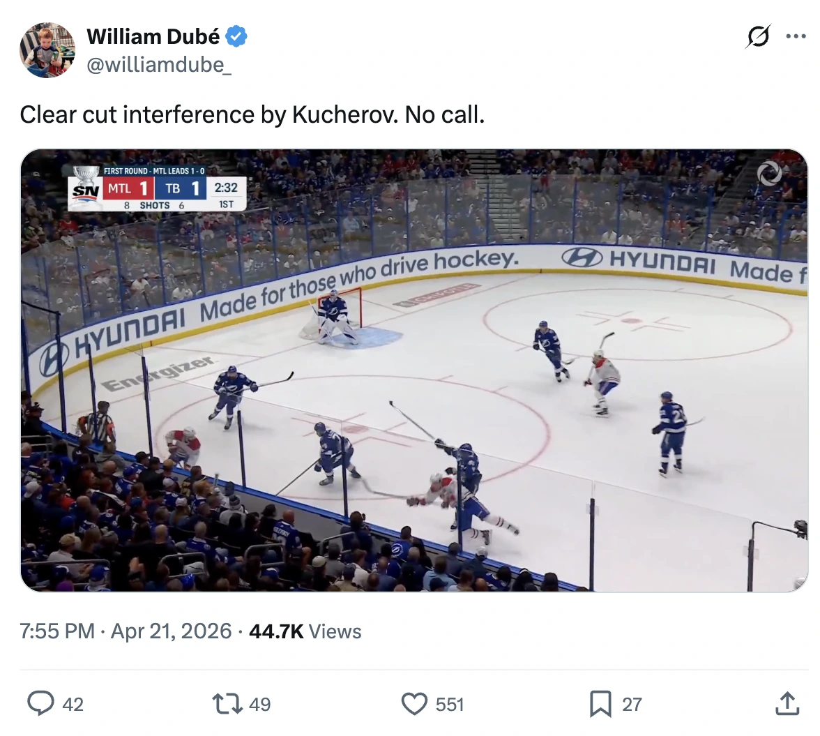 Et ce qui alimente encore plus le malaise, c’est ce statut presque intouchable qui entoure Kucherov. Mardi soir, lors du match numéro 2, certaines décisions ont clairement penché de son côté, comme si son talent lui offrait un passe-droit que peu de joueurs peuvent se permettre.